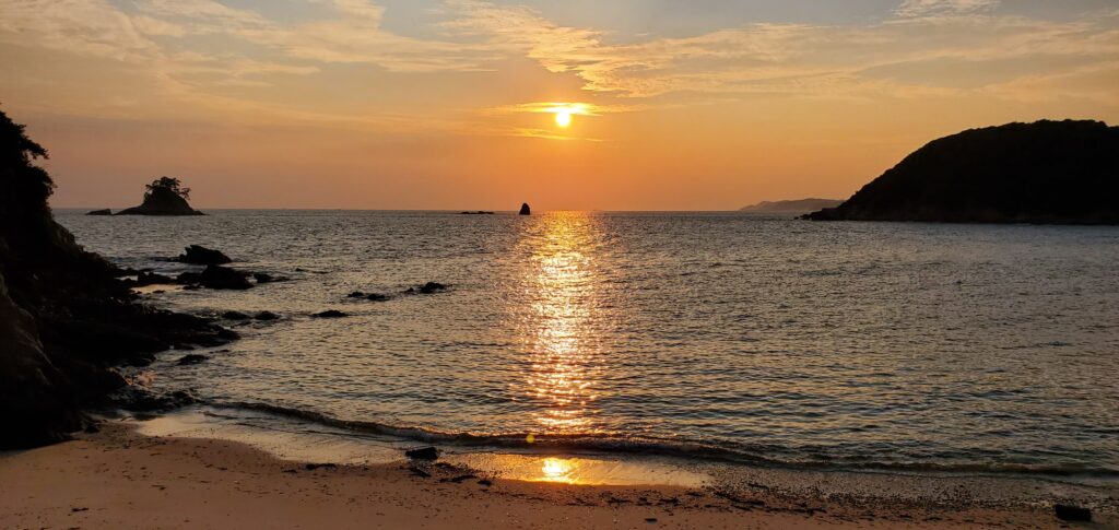 篠島には、都会や街には無い自然豊かな美しい景観や歴史的な建造物が多く、今回ご紹介する『松島の夕日』も篠島に訪れないと見る事の出来ないとても美しい観光スポットなのです!